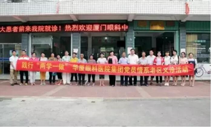 2016年6月25日,在紀(jì)念中國共產(chǎn)黨誕辰95周年之際,結(jié)合“兩學(xué)一做”,集團(tuán)黨委開展“重走紅軍路,送醫(yī)到老區(qū)”活動(dòng)。華廈眼科醫(yī)院集團(tuán)黨委書記陳寶貴組織全體黨員到閩西革命老區(qū)龍巖連城新泉鎮(zhèn),慰問當(dāng)?shù)匮奂怖щy戶,并為300多位眼疾患者做篩查,深受老區(qū)群眾贊譽(yù);