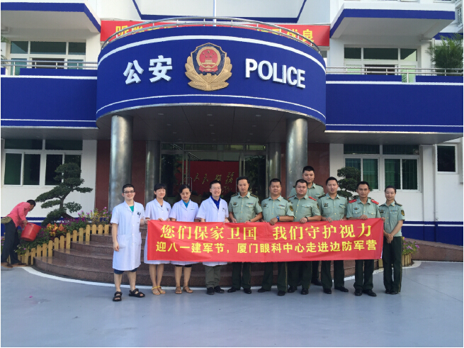 為迎接中國(guó)人民解放軍建軍88周年,秉著每年建軍節(jié)為官兵眼體檢的傳統(tǒng),7月30日下午,廈門眼科中心眼表與角膜病專家一行7人專程到思明區(qū)曾厝垵邊防所,開展健康咨詢、義診活動(dòng),并為邊防官兵贈(zèng)送了眼藥水。