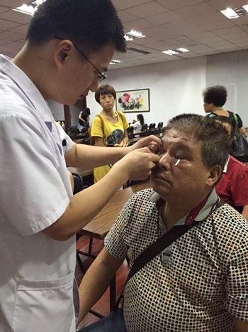 醫(yī)生為患者進行干眼測試與眼部檢查