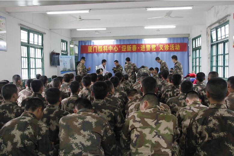 1月29日下午,廈門(mén)眼科中心眼表與角膜病專家一行9人冒著冬雨到翔安武警邊防支隊(duì)機(jī)動(dòng)大隊(duì),開(kāi)展“迎新春 送健康”健康咨詢、義診活動(dòng),并為邊防支隊(duì)武警贈(zèng)送了進(jìn)口眼藥水。廈門(mén)眼科中心以實(shí)際行動(dòng)提前為武警邊防支隊(duì)致以新春祝福與問(wèn)候,并送去了健康。義診現(xiàn)場(chǎng)氣氛十分熱烈,義診從下午三點(diǎn)半一直持續(xù)到下午六點(diǎn),為近百名武警做了眼體檢。