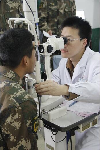 廈門(mén)眼科中心董諾博士為武警檢查眼睛