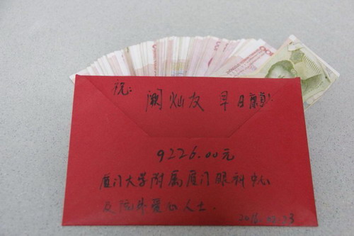 眼外傷的醫(yī)務(wù)人員不僅醫(yī)術(shù)好,而且真正做到了醫(yī)者仁心,有醫(yī)術(shù),有醫(yī)德!等兒子長(zhǎng)大后,我會(huì)告訴他這些事情,帶他來(lái)廈門感謝那些幫助過(guò)我們的人,我也會(huì)教育他,像幫助過(guò)他的那些人一起去幫助別人。