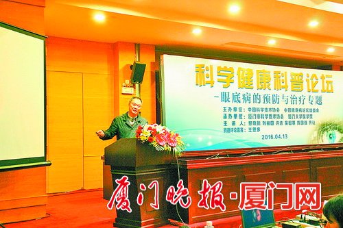 廈門大學附屬廈門眼【文章導讀】昨日舉行的“2016中國眼底病論壇——科學健康科普論壇”上,廈門大學附屬廈門眼科中心業(yè)務院長、眼底病學科帶頭人吳國基為市民帶來一場關于 飛蚊癥的演講