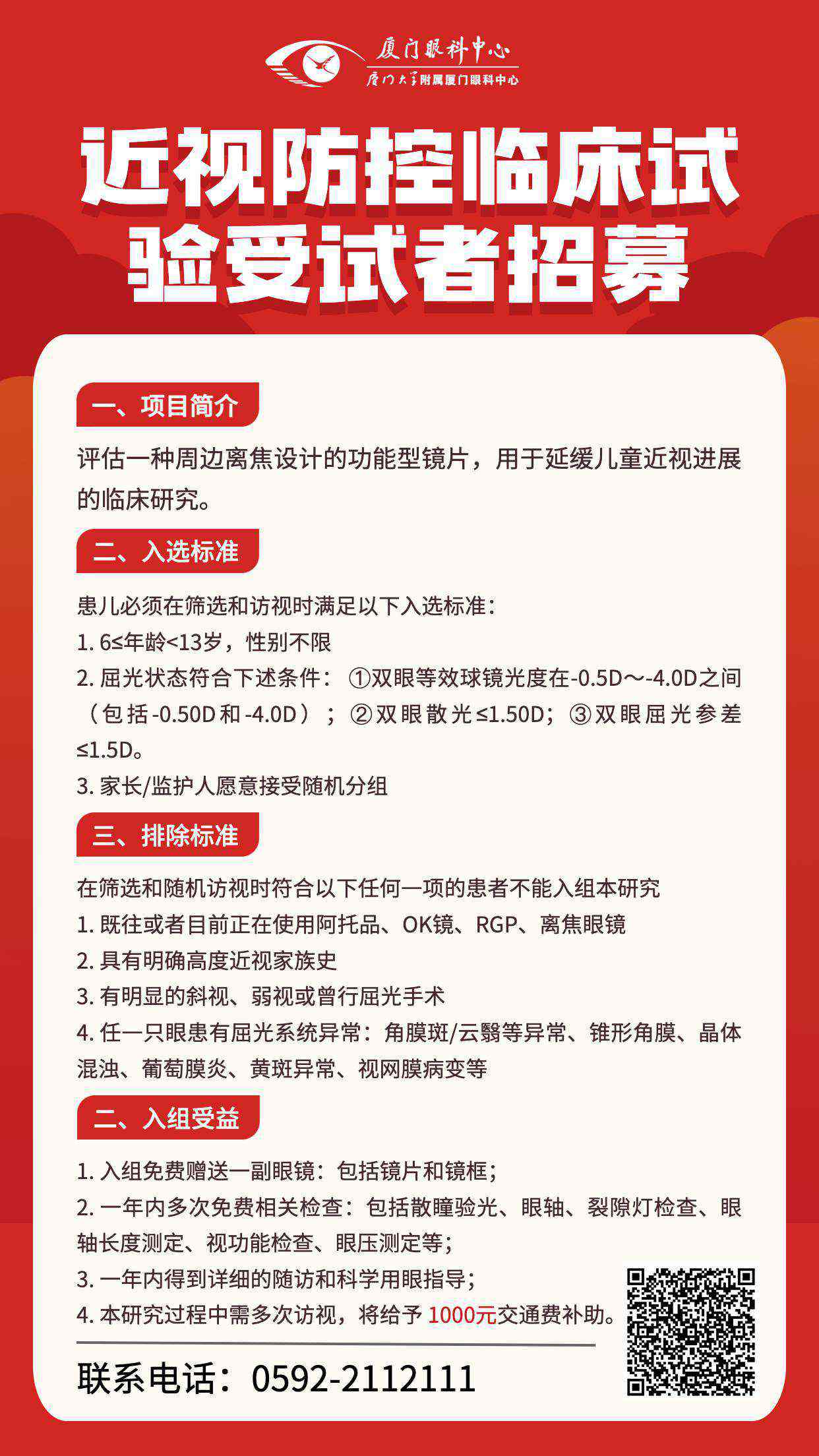 本次研究對(duì)受試者的個(gè)人信息將嚴(yán)格保密,所獲的所有信息將僅作研究分析之用。如果有可能符合以上條件或想了解更多信息的朋友,可以通過以下方式咨詢:0592-2112111