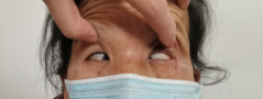 坐在謝仁藝博士面前的劉阿婆,左眼眼皮耷拉下垂,無法自主睜眼。用手把眼皮撐開,只見雙眼的黑眼珠都嚴重向內向下偏移,左眼眶里的黑眼珠更是只余一小塊黑點,幾乎已快要“消失不見”。