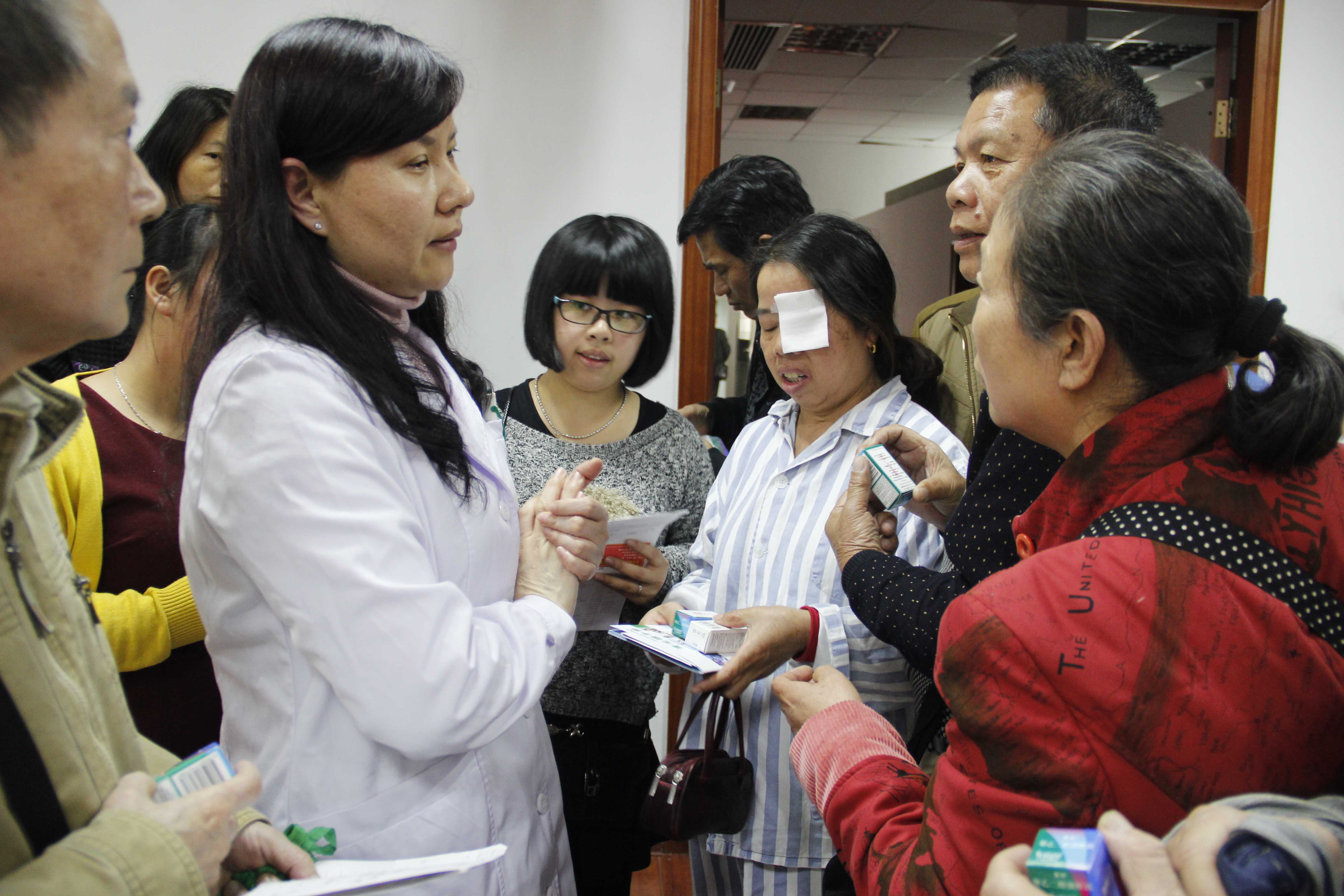 科室曾來了一個外地打工的18歲小姑娘,父母近親結(jié)婚導致她的身體狀況欠佳,因為家庭經(jīng)濟拮據(jù),并未及時得到治療,直至雙眼視物逐漸模糊、變黑她才到醫(yī)院就診。經(jīng)檢查,小姑娘晶體脫位并患有繼發(fā)青光眼,雙眼都需要手術(shù),但昂貴的手術(shù)費他們無法承受。為了能讓小姑娘順利完成青光眼引流釘手術(shù),王玉宏為她聯(lián)系了慈善機構(gòu),并發(fā)動科室人員為她們一家捐贈財物。由于青光眼具有家族遺傳的性質(zhì),在她的妹妹身上也檢查出青光眼,但還沒有那么嚴重,王玉宏也免費為她妹妹提供藥物治療。多年來,青光眼科室精湛的醫(yī)療技術(shù)和善舉贏得了患者和家屬的好評,更有不少患者慕名其拿來就診。