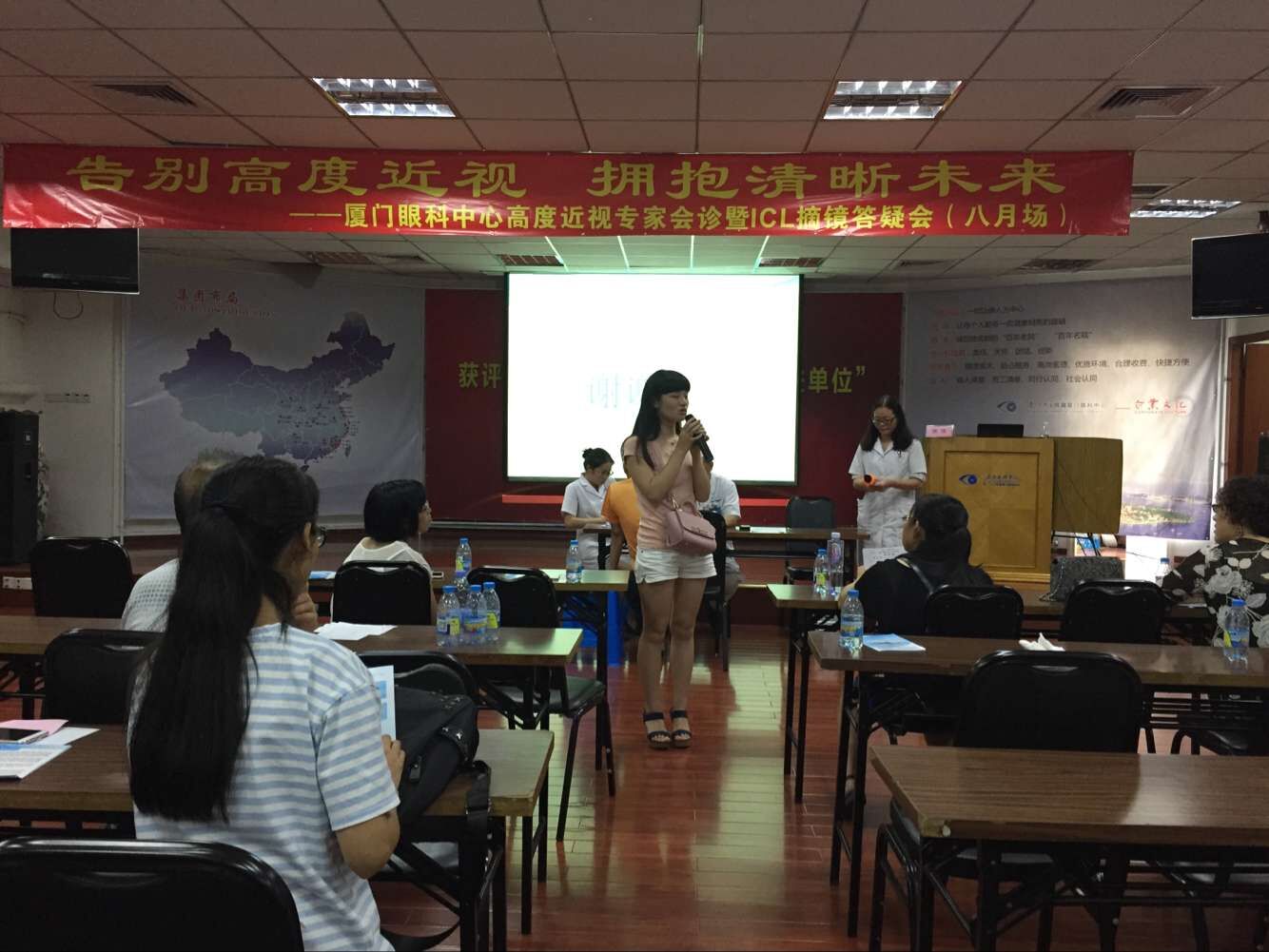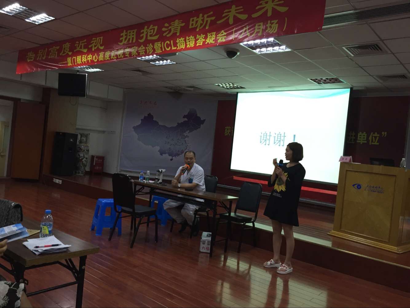 演講結(jié)束后,有兩位做過(guò)高度近視ICl晶體植入術(shù)的患者于大家分享經(jīng)驗(yàn)。兩位都是女士,一位做的的T