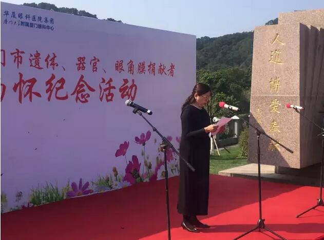 廈門大學(xué)附屬廈門眼科中心是福建省眼角膜捐獻指定的接收機構(gòu)。廈門大學(xué)附屬廈門眼科中心黨委書記陳逸恬在緬懷儀式上致辭,表達對生命的理性思考,對捐獻者偉大人格的崇敬之情。同時希望“人道、博愛、奉獻”的紅十字精神越來越被廣大愛心市民所接受和推崇,也希望更多的角膜盲患者能重獲光明,開啟新的生活。