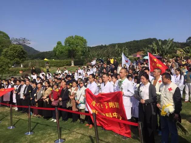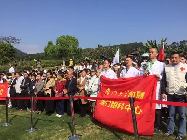 4月1日上午,廈門市紅十字會聯(lián)合廈門大學(xué)附屬廈門眼科中心在海滄文圃山陵園組織的2017年廈門市遺體與器官(組織)捐獻者緬懷紀念活動順利舉行。捐獻者家屬、捐獻志愿者代表,廈門市紅十字會黨組書記、常務(wù)副會長蘇蘇,廈門市紅十字會副會長兼秘書長俞娟,廈門市衛(wèi)計委醫(yī)政醫(yī)管處處長陳糧,廈門大學(xué)附屬廈門眼科中心黨委書記陳逸恬,以及廈門海滄文圃山陵園開發(fā)有限公司、廈門大學(xué)醫(yī)學(xué)院、廈門醫(yī)學(xué)院、廈門大學(xué)附屬廈門眼科中心以及各區(qū)紅十字會代表共300余人參加了活動。