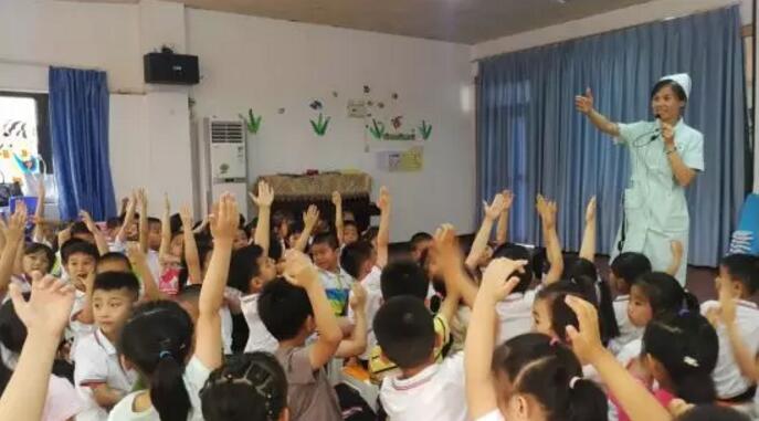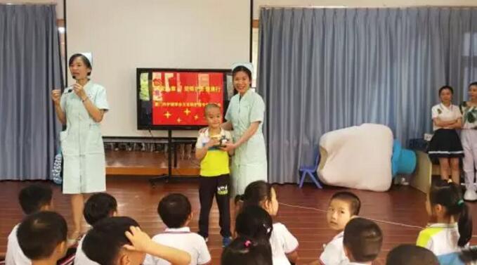 在廈門大學附屬廈門眼科中心屈光中心護士長陳美珠帶領(lǐng)下, 5名護理人員走進廈門市警備區(qū)幼兒園,為123名可愛活潑的孩子送去護眼健康科普知識講座及視力檢查等活動。