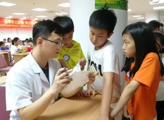 廈門眼科中心醫(yī)生免費(fèi)為現(xiàn)場的學(xué)生們進(jìn)行眼睛“體檢”