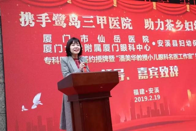 2月19日上午,廈門大學(xué)附屬廈門眼科中心與安溪縣婦幼保健院就小兒眼科共建醫(yī)療聯(lián)合體,并舉行了“潘美華教授小兒眼科名醫(yī)工作室”揭牌儀式。