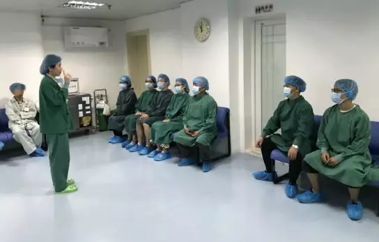 在工作人員的指引下,想觀摩近視手術(shù)的朋友被引導(dǎo)到手術(shù)室參觀。屈光手術(shù)中心陳美珠護(hù)士長為大家詳細(xì)介紹了近視手術(shù)的相關(guān)流程和注意事項,同時還回答了參觀者的一些問題。