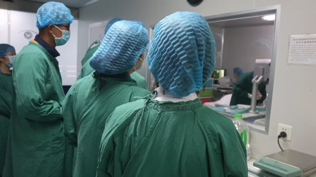 ▲參與活動(dòng)的朋友們近距離觀摩近視手術(shù)