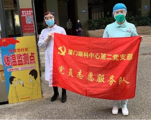 廈門眼科中心第二黨支部支部書記張美嫦:“越是困難的時候,越是體現(xiàn)支部戰(zhàn)斗堡壘作用的時候。”利用休息時間,張美嫦帶領(lǐng)支部黨員志愿服務(wù)隊,主動到社區(qū)一線體現(xiàn)志愿擔(dān)當。勸導(dǎo)訪客,為小區(qū)出人人員測量體溫,這支溫度計里有溫度也有愛心。