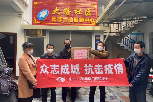 ▲廈門眼科中心為漳州市云霄縣大路社區(qū)捐贈抗疫物資