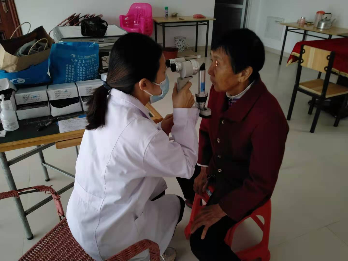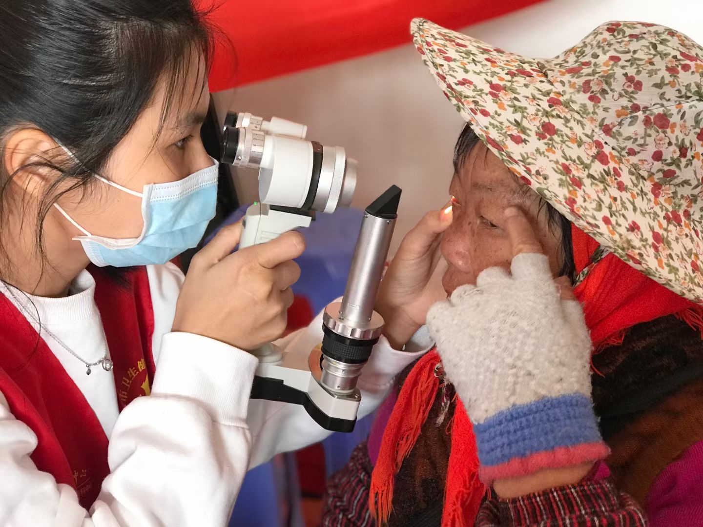 首次測(cè)視力的劉奶奶,有些緊張,醫(yī)生們很耐心地告訴她怎么比劃,奶奶很認(rèn)真,高興得像個(gè)孩子。隊(duì)伍里,81歲高齡的高奶奶在兒子的勸說(shuō)下前來(lái)檢查,高奶奶的眼睛一年以來(lái)漸漸模糊看不清事物,連迎面走來(lái)的兒子都經(jīng)常要靠聲音辨認(rèn),“我年紀(jì)大了,出門(mén)也不方便,下山去醫(yī)院檢查太麻煩了!”兒子聽(tīng)說(shuō)三甲