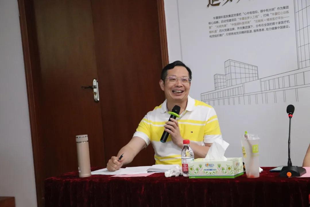 同心同行,業(yè)道酬精。華廈眼科醫(yī)院集團(tuán)董事長蘇慶燦認(rèn)真聽取學(xué)科負(fù)責(zé)人匯報(bào),充分肯定了各科室上半年的工作成績。同時(shí),蘇慶燦董事長對下半年工作提出要求。他強(qiáng)調(diào)醫(yī)院全體員工要始終牢固樹立“一切以病人為中心”的服務(wù)宗旨,強(qiáng)化服務(wù)意識,優(yōu)化服務(wù)質(zhì)量,為患者提供有溫度的醫(yī)療服務(wù)。不但要讓病人滿意,還要讓病人感動。同時(shí)要繼續(xù)大力引進(jìn)新技術(shù)、新設(shè)備,提升我院醫(yī)療技術(shù)水平,全力推進(jìn)醫(yī)院各項(xiàng)工作再上新臺階。