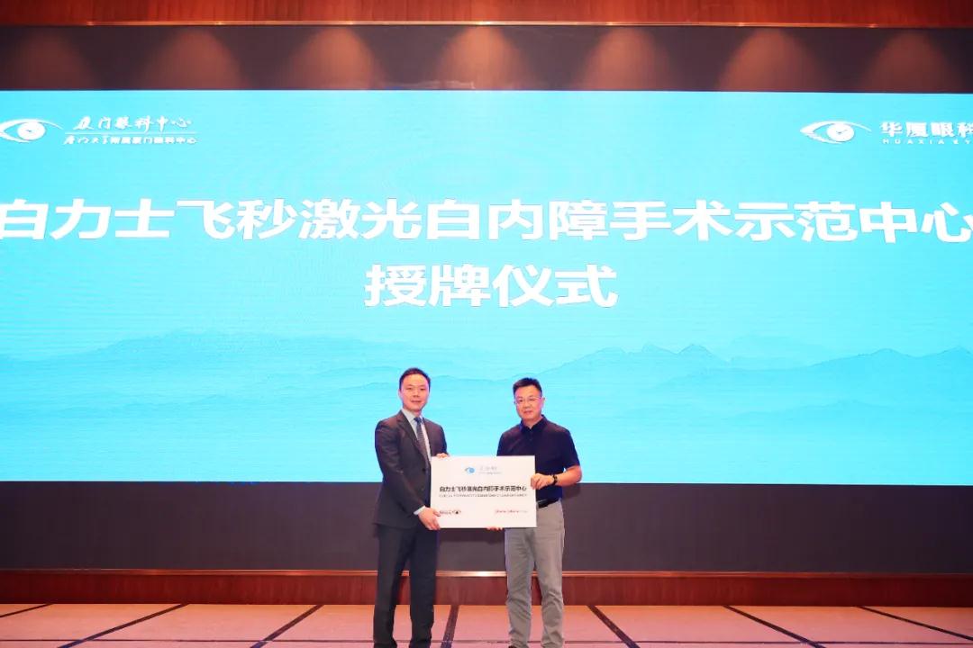 科技賦予光明力量,點亮高清美好生活。在論壇開幕式上同步舉行強生眼力健“Catalys白力士”眼科飛秒激光治療機開機發(fā)布會。強生眼力健中國區(qū)“飛秒激光眼表”事業(yè)部負責(zé)人宋漢崴為廈門眼科中心授予白力士飛秒激光白內(nèi)障手術(shù)應(yīng)用中心、白力士飛秒激光白內(nèi)障手術(shù)示范中心牌匾。“Catalys白力士”飛秒激光治療系統(tǒng)廣泛應(yīng)用于全球,該系統(tǒng)于6月在廈門眼科中心先行裝機落戶,此回正式開機,標(biāo)志著廈門眼科中心在白內(nèi)障無刀、智能新時代上再迎來新的里程碑。