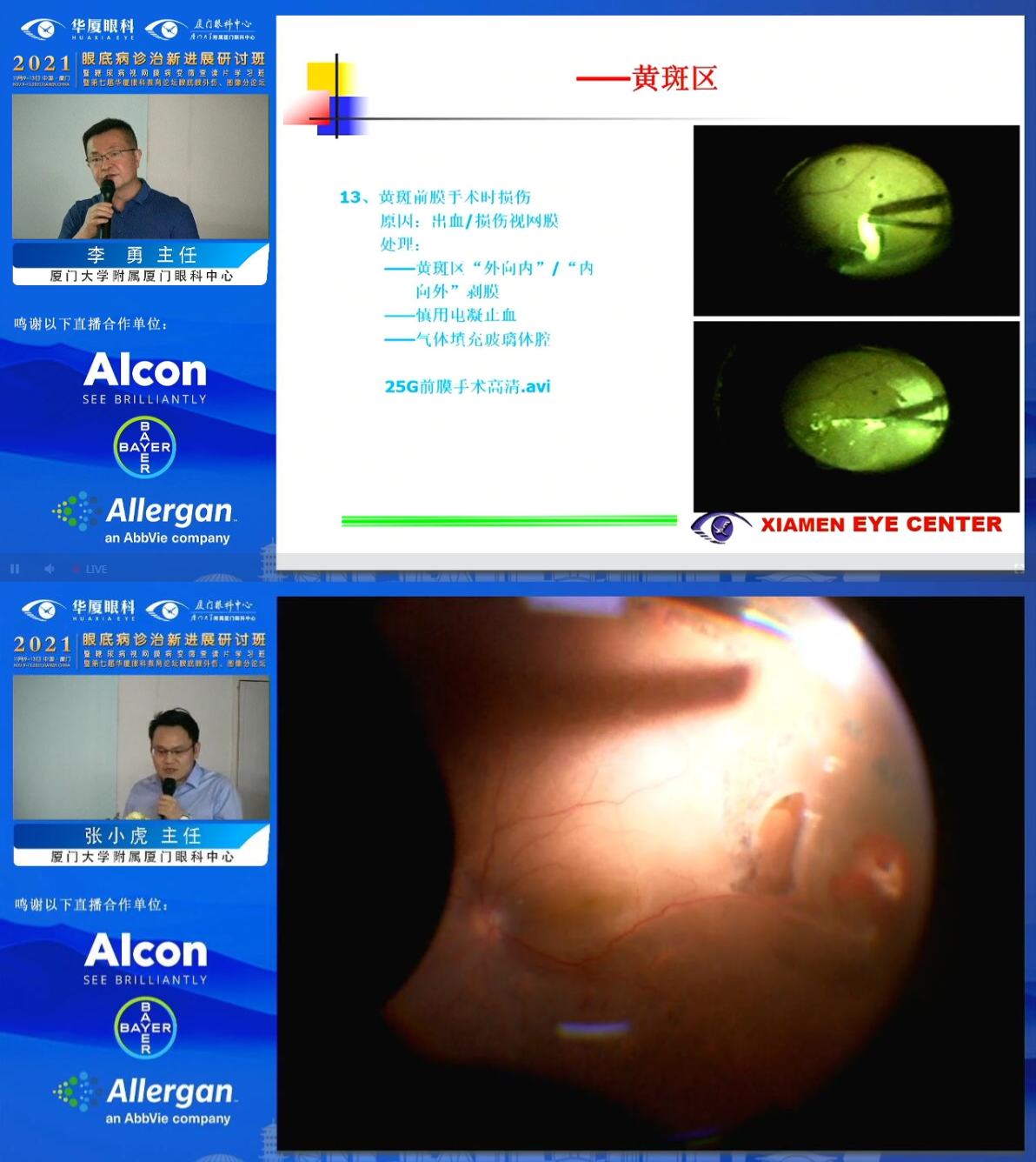 黎曉新院長圍繞高度近視黃斑劈裂、葡萄膜炎、視網(wǎng)膜靜脈阻塞、兒童遺傳性視網(wǎng)膜病、DR適應癥、孔源性視網(wǎng)膜脫離、鞏膜扣帶術、眼內(nèi)液檢測、眼內(nèi)激素治療DME等主題進行全方位深層次的講解,對有關熱點問題積極探討,交流實踐經(jīng)驗,分享成果,助力中國防盲治盲事業(yè)發(fā)展。