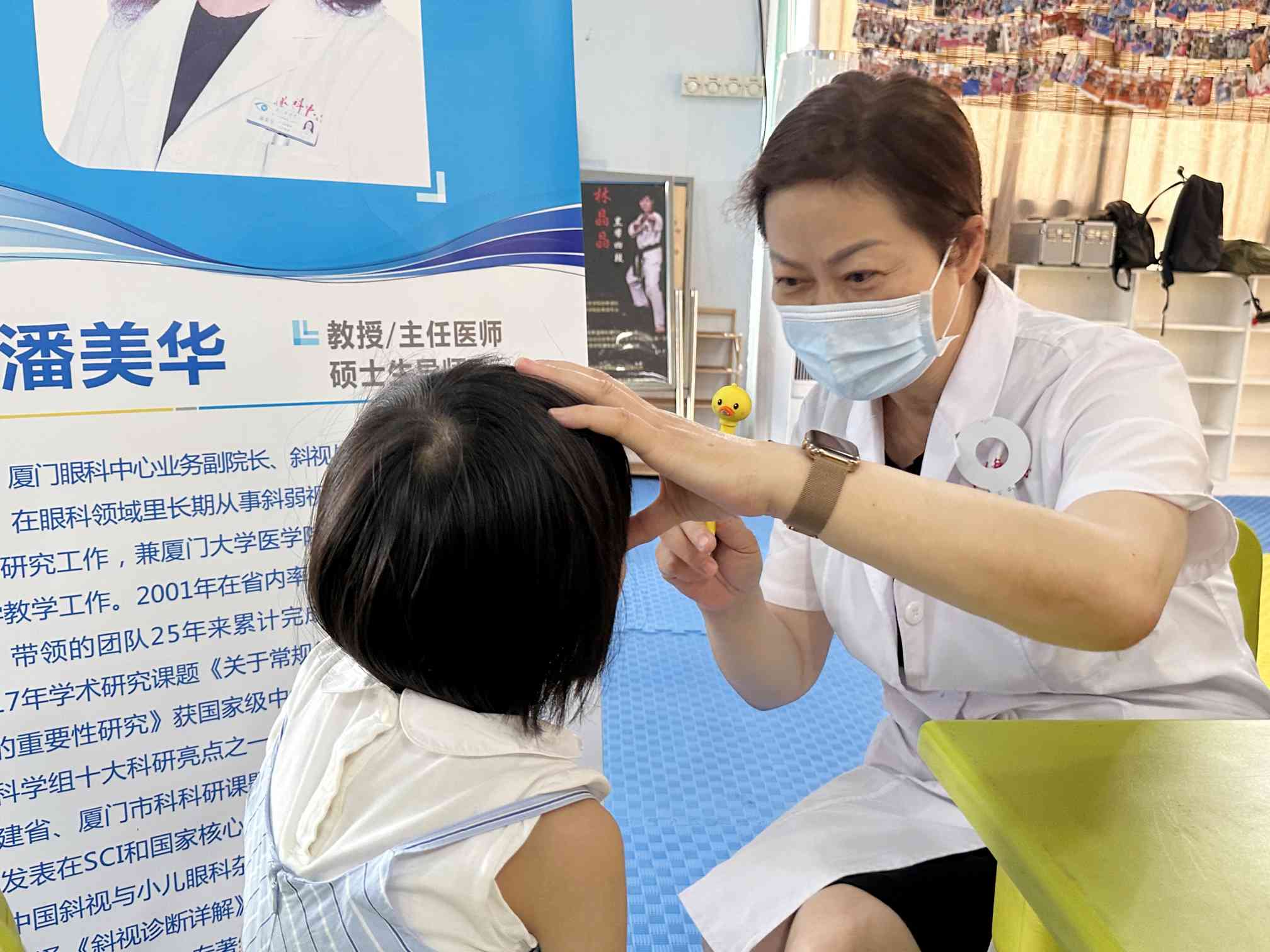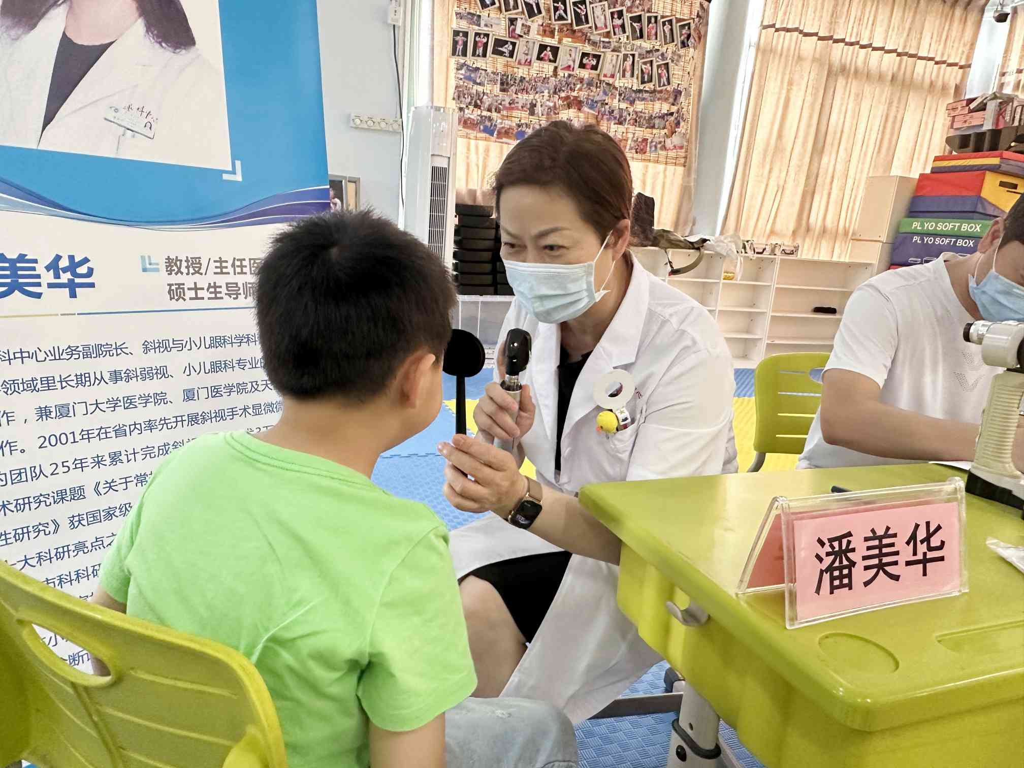 近日,為守護(hù)特需兒童的光明未來,在廈門市「愛心廈門」建設(shè)工作領(lǐng)導(dǎo)小組辦公室及海滄區(qū)殘疾人聯(lián)合會(huì)的指導(dǎo)下,廈門眼科中心「看見幸?!寡劢】倒骓?xiàng)目志愿者服務(wù)隊(duì)在業(yè)務(wù)副院長(zhǎng)、斜視與小兒眼病中心學(xué)科帶頭人潘美華教授的帶領(lǐng)下,來到了海滄區(qū)小海星特殊兒童服務(wù)中心,為特需兒童們開展了一場(chǎng)特殊的眼健康公益篩查診療活動(dòng)。