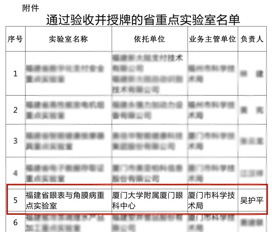 日前,福建省科學(xué)技術(shù)廳對(duì)18家省重點(diǎn)實(shí)驗(yàn)室(企業(yè)類)開展了驗(yàn)收工作,經(jīng)過層層嚴(yán)格評(píng)選,充分評(píng)估和集體調(diào)研后,我院建設(shè)的眼表與角膜病重點(diǎn)實(shí)驗(yàn)室成功通過驗(yàn)收并授牌!實(shí)驗(yàn)室依托三甲??漆t(yī)院雄厚的醫(yī)療實(shí)力,圍繞疑難眼病開展應(yīng)用基礎(chǔ)、轉(zhuǎn)化和臨床研究,旨在打造引領(lǐng)同類學(xué)科向上向前的科技力量,建成國際一流的疑難眼表與角膜疾病科研、檢測與診治中心。