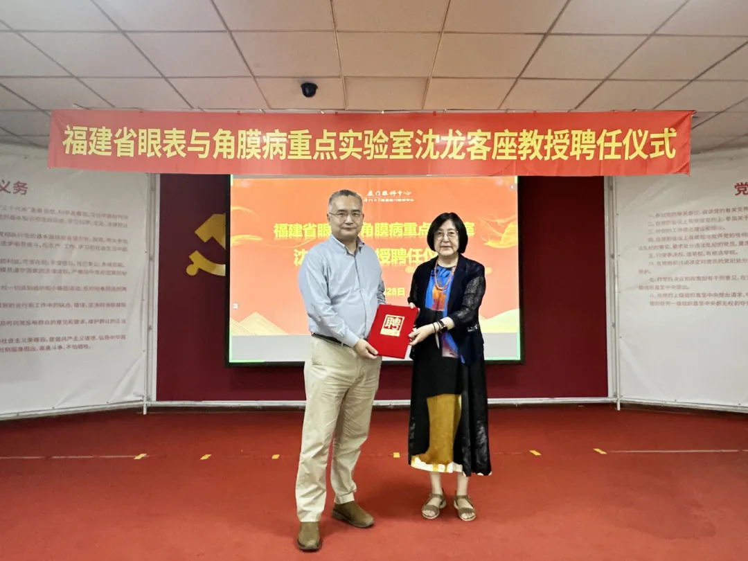 8月28日下午,沈龍教授聘任儀式在廈門眼科中心思北院區(qū)舉行。之后,作為福建省眼表與角膜病重點實驗室客座教授,沈龍教授將協(xié)助廈門眼科中心眼表與角膜病中心專家團隊推進眼表與角膜病領域科研項目的開展,通過國內外學術交流與協(xié)作,加速學科臨床科研水平的提升和科研成果的轉化、應用。