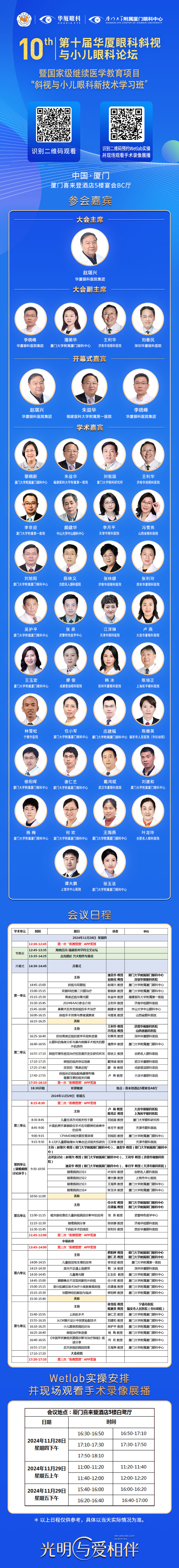 本屆會議主席由國內(nèi)斜視與小兒眼科界領(lǐng)軍人、華廈眼科醫(yī)院集團(tuán)專家委員會主席趙堪興教授及廈門大學(xué)附屬廈門眼科中心業(yè)務(wù)副院長潘美華教授、李曉峰教授、王利華教授、劉春民教授共同擔(dān)任,會議榮幸地邀請到眾多國內(nèi)著名專家強(qiáng)勢助陣。