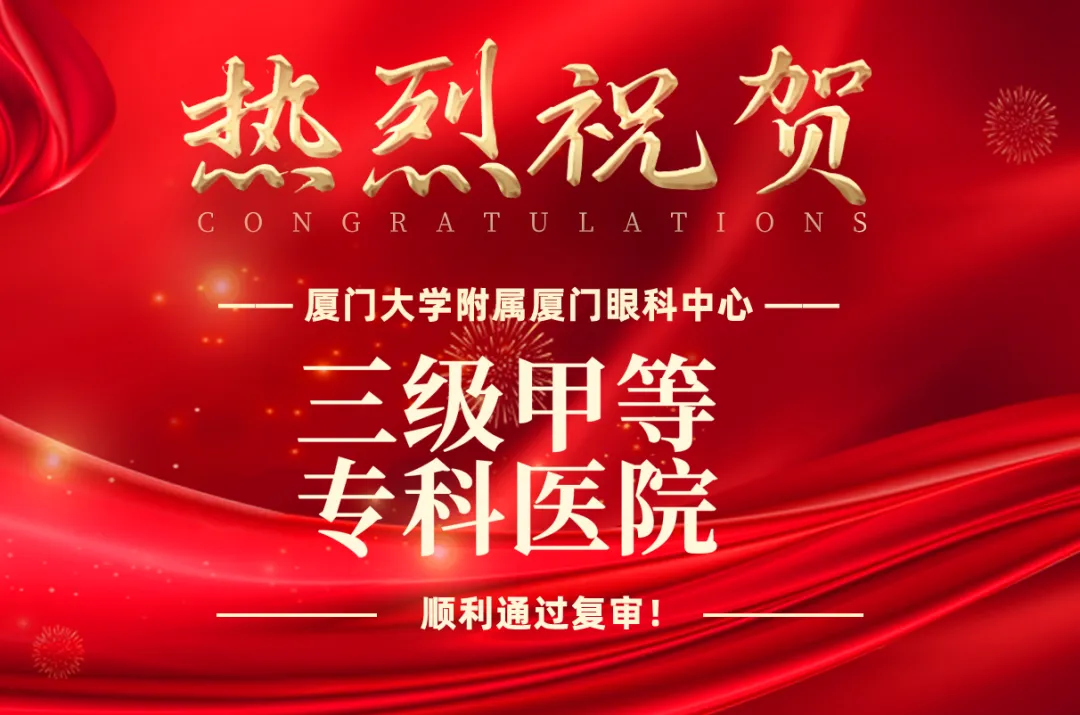 廈門眼科中心閃耀“【文章導(dǎo)讀】2024年12月31日,福建省衛(wèi)生健康委員會(huì)正式發(fā)文,經(jīng)資格審查、現(xiàn)場(chǎng)評(píng)審、綜合評(píng)分、結(jié)果公示,確定廈門大學(xué)附屬?gòu)B門眼科中心(以下簡(jiǎn)稱廈門眼科中心)為三級(jí)甲等??漆t(yī)院。廈門