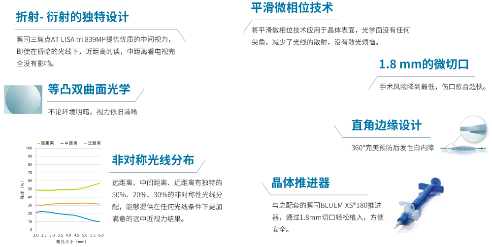 提供三個焦點(diǎn),覆蓋了距離范圍,將白內(nèi)障、老花眼術(shù)后遠(yuǎn)、中、近全程優(yōu)視力變?yōu)楝F(xiàn)實。