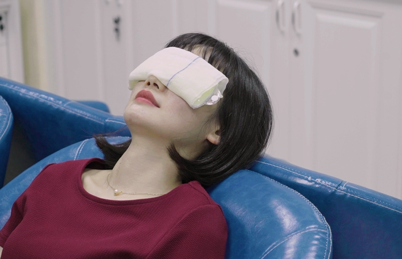 用熱毛巾或者熱敷眼罩對(duì)眼睛進(jìn)行熱敷,每天一次,每次15分鐘。