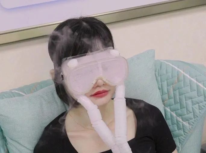 佩戴專用眼罩,通過儀器將藥物霧化成細(xì)小分子,恒溫輸出到眼罩內(nèi),在眼罩內(nèi)形成封閉的空間。